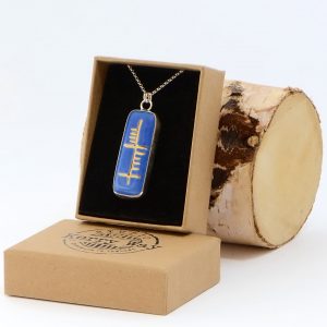 Blue and Yellow Irish Spiral Handmade Cloisonné Silver Enamelled Cross Pendant